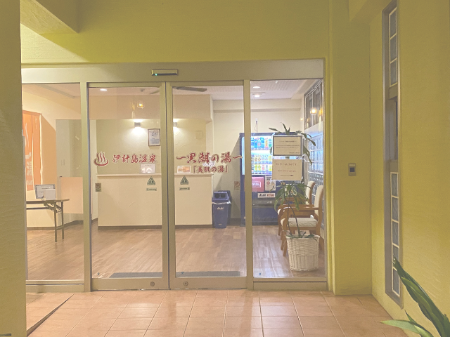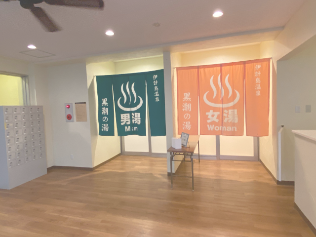 1階に降りてフロントの横を通ると温泉へ、入り口では温泉へ入るキーをかざすと自動ドアが開き、男湯・女湯に分かれています。