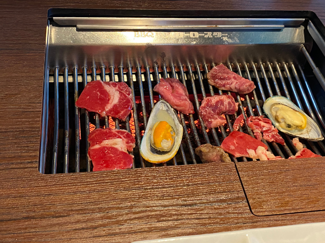 夕食では90分という時間制限付きの焼き肉食べ放題ブッフェ。