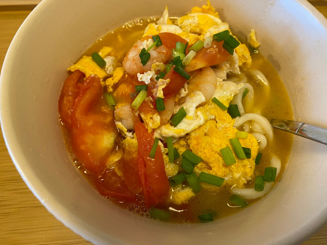 トマトラーメン:酸味・甘み・海老の旨みがバランスよくて食べやすい!