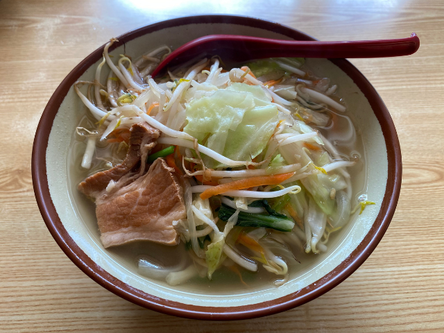 野菜そばは、キャベツやもやし、にんじんなどのシャキシャキ野菜がたっぷりのったボリューム満点の一杯。