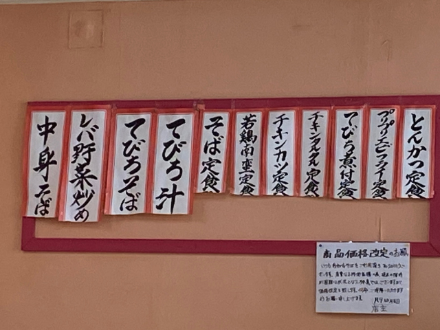 清潔感があり、壁には手書きのメニューやおすすめが貼られています。